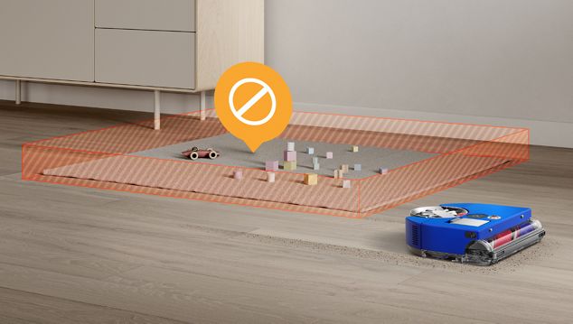 En plus d’éviter les obstacles, l’aspirateur robot Dyson détecte automatiquement les bords et adapte son aspiration pour capturer la poussière jusque dans les recoins.